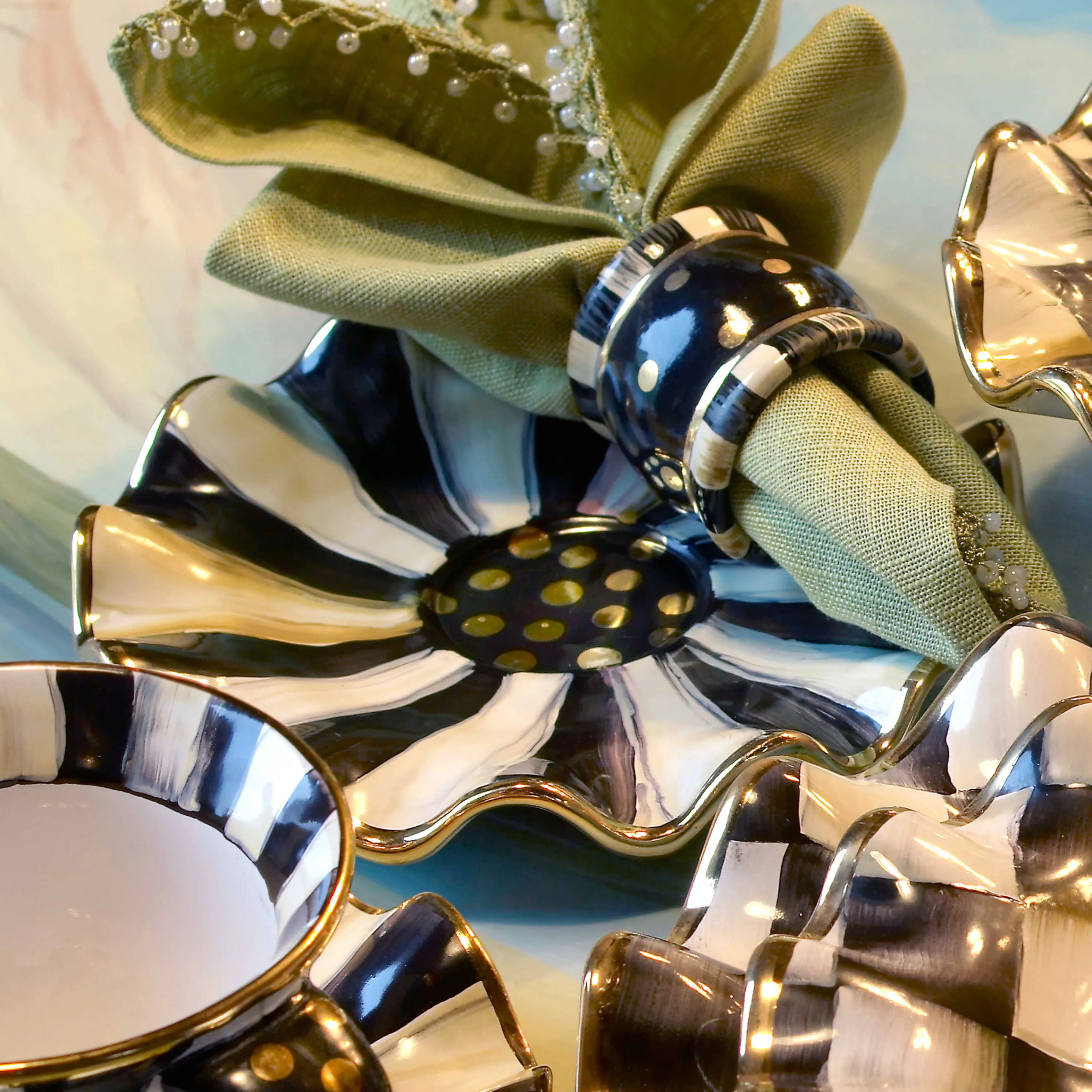 Sweet And Petite, The Rippling Rim Of Our Courtly Check® Saucer Looks Picture-Perfect With The Matching Cup. A Beautiful Juxtaposition Of Ivory And Onyx, Our Deceptively Simple Signature Checks Reveal An Intricate Spectrum Of Jewel-Toned Colors. Handmade, Fired, Glazed, Fired Again, Hand-Painted, Embellished With Lustre, And Fired Again, Each Piece Is Stamped By The Artisans Involved In Its Creation.
