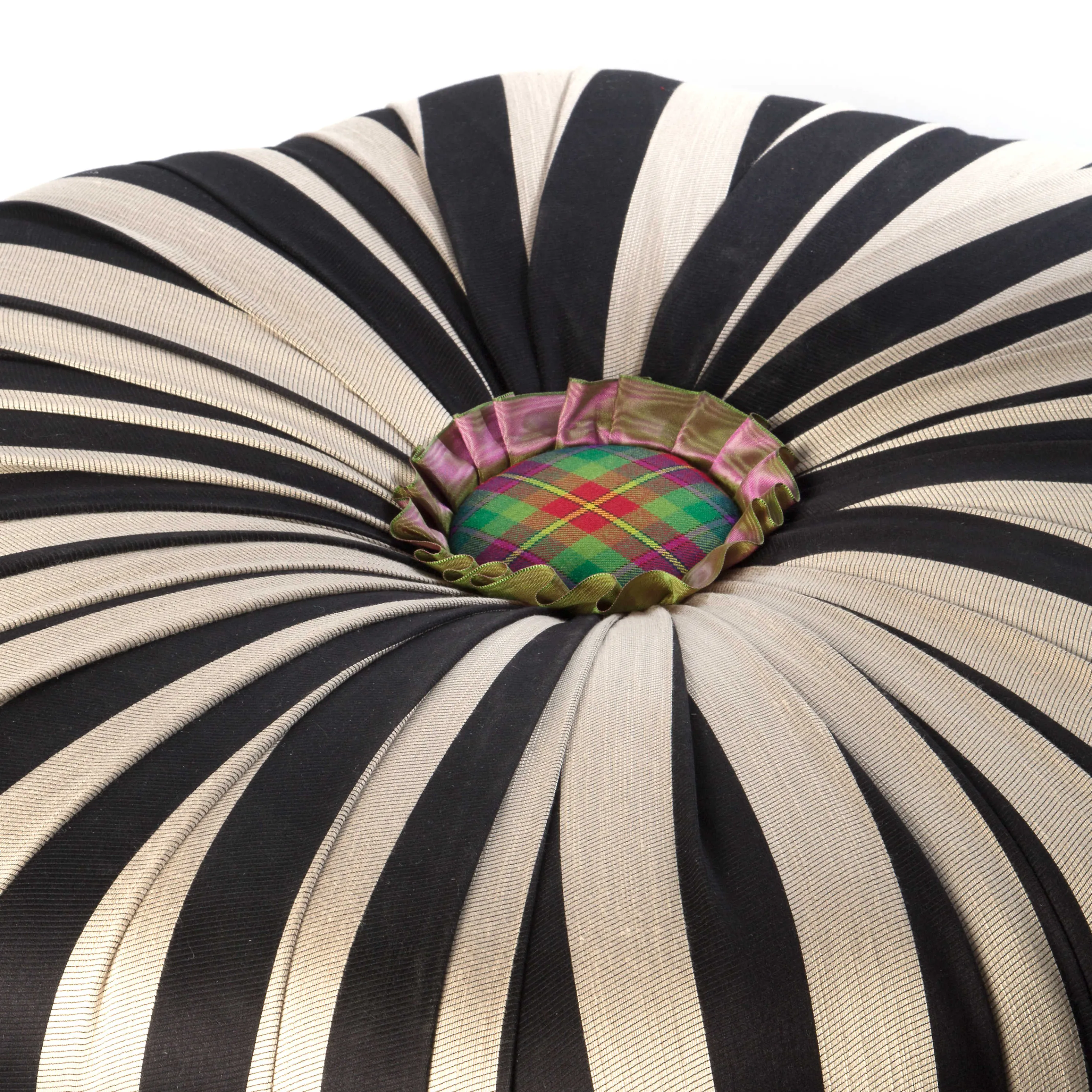 As You Would Expect, Our On Wall Street Setting Seat Is Sharp Dresser, Indeed. This Handsome Piece Is A Smart Investment, In Classic Black-And-Beige Cotton-Blend Striped Satin Jacquard, With An Iridescent Purple-And-Green Moire Pleated Ruff, A Button Covered With Gordonstown Tartan, And An Accent Of Tasseled Fringe. Setting Seats Are As Delightful In A Family Room As In A Formal Parlor. Enjoy Luxuriously Comfortable Cushions In Sumptuous Fabrics And Four Handmade, Hand-Glazed Majolica Legs, Hand-Painted By Our Artisans With Stripes, Signature Checks, Ceramic Floral Transfers, And Gold Lustre Embellishments. Each Has Its Own Personality, But All Offer Gorgeous Versatility-Be It Stylish And Sumptuous Guest Seating Or A Sunning Spot For A Spoiled Siamese. Add A Glass Top (Not Included) For A One-Of-A-Kind Coffee Table.