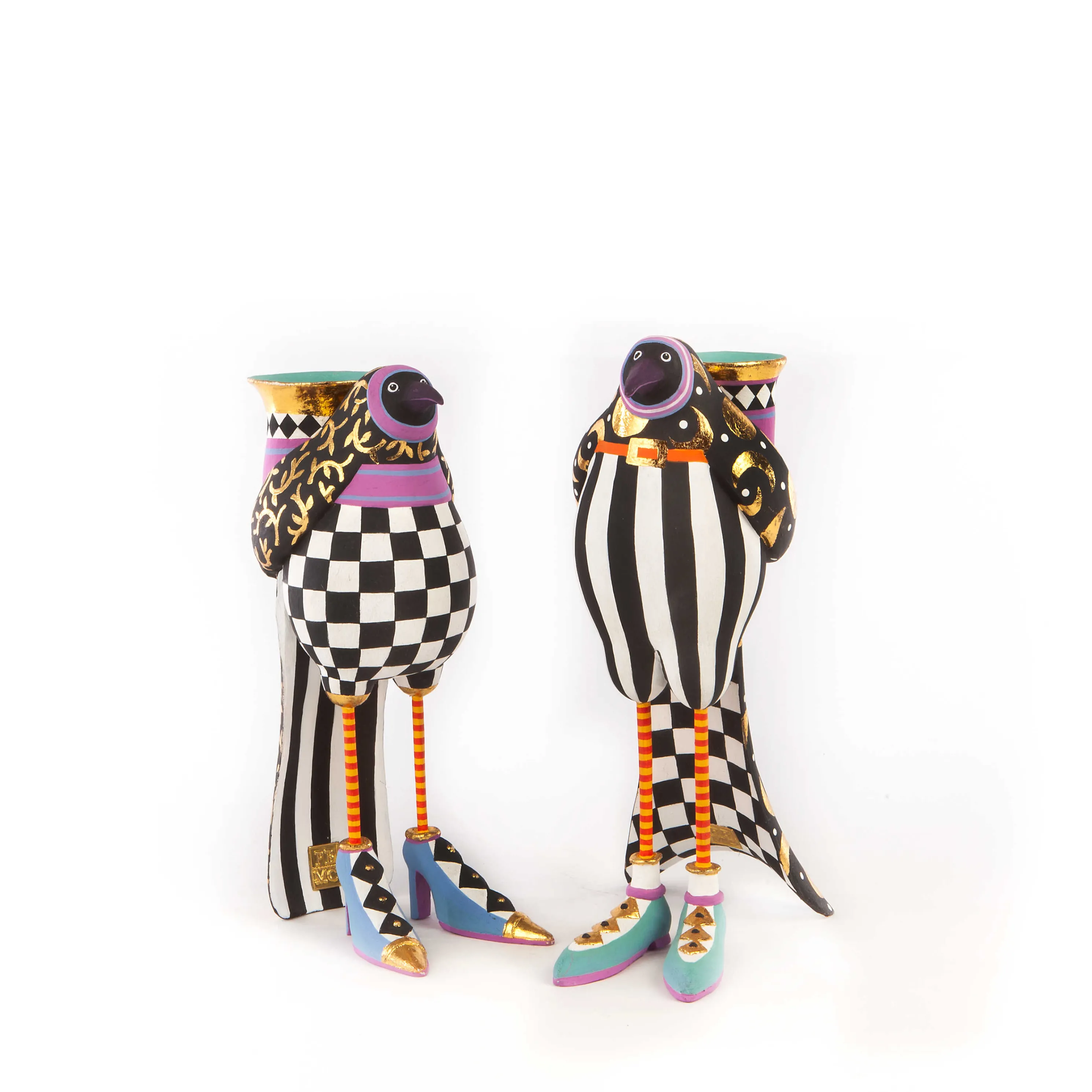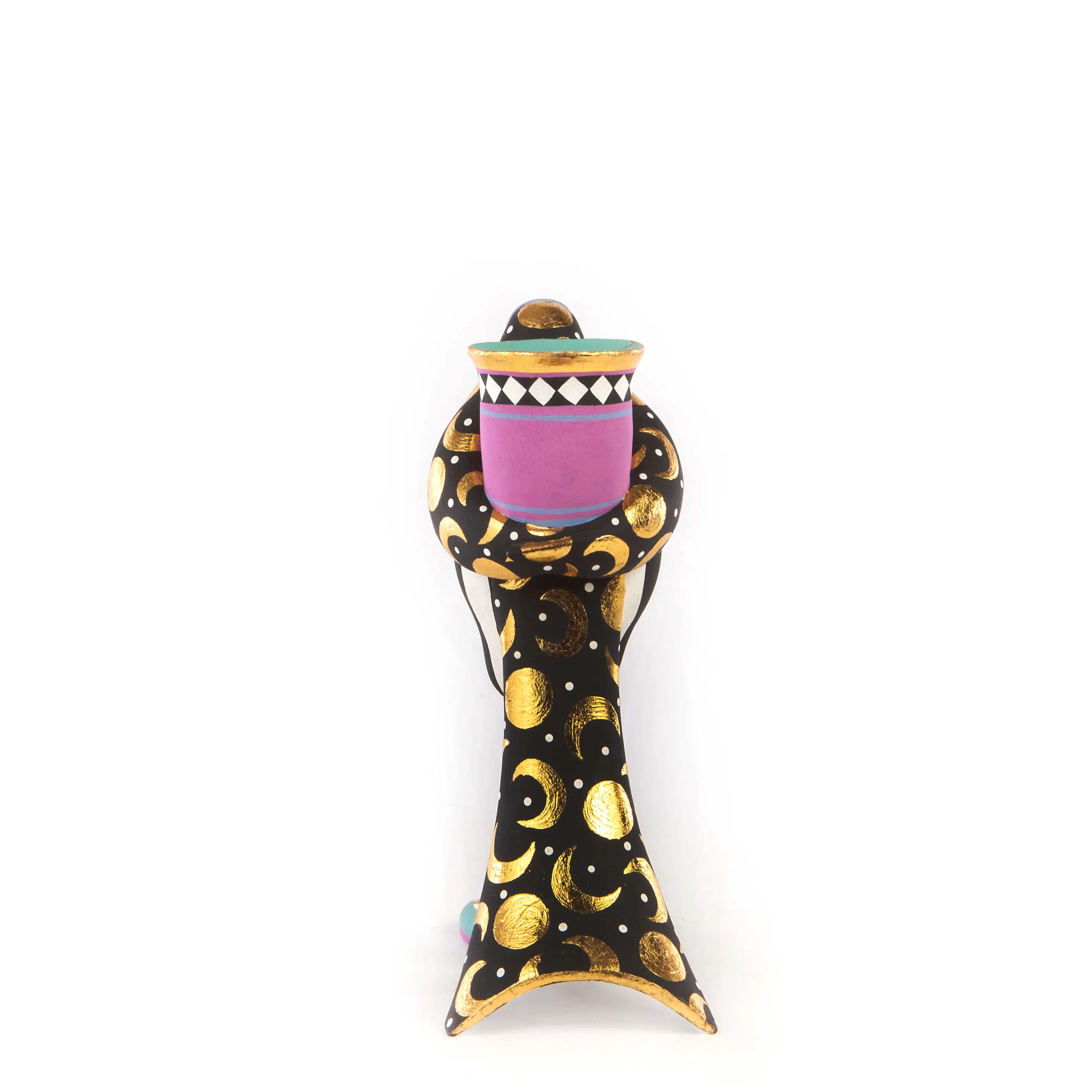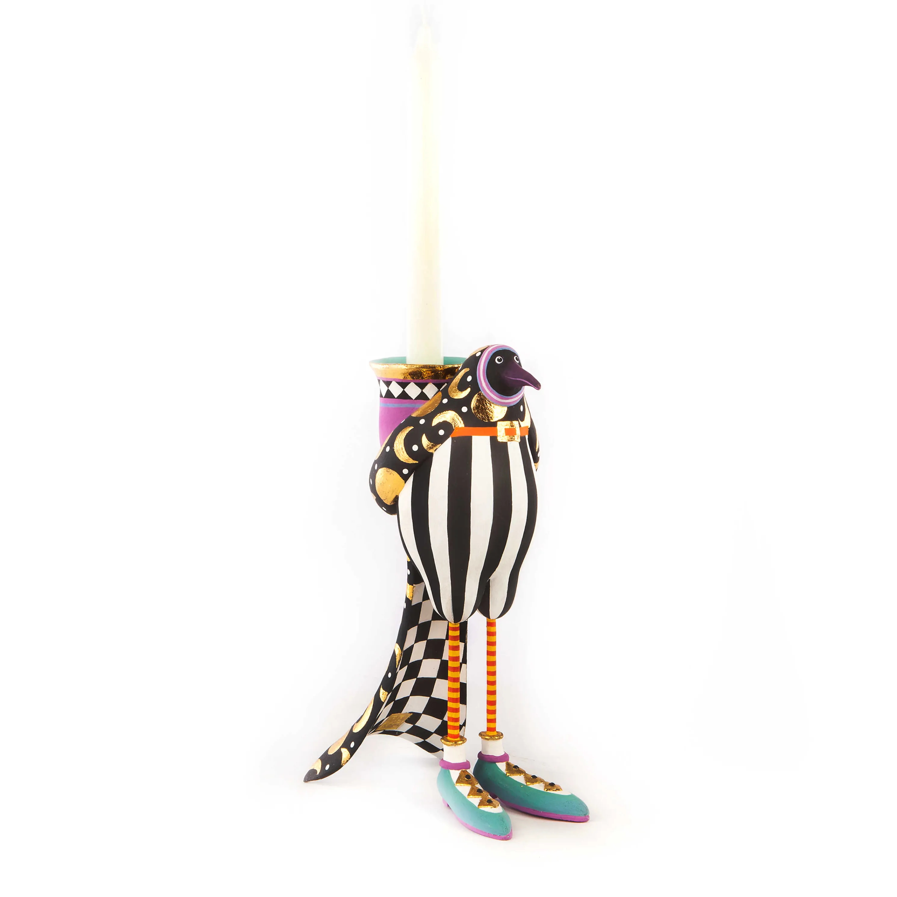 Enhance The Ambience Of Candlelight With The Patience Brewster Carl Crow Candle Holder. Carl’S Body Is Decorated With A Mix Of Patterns, Including Stripes On His Body And Gold-Leafed Moons And Stars On His Wings. His Candle Holder, Decorated With Checks And Harlequin Diamonds, Holds A Dinner Candle.