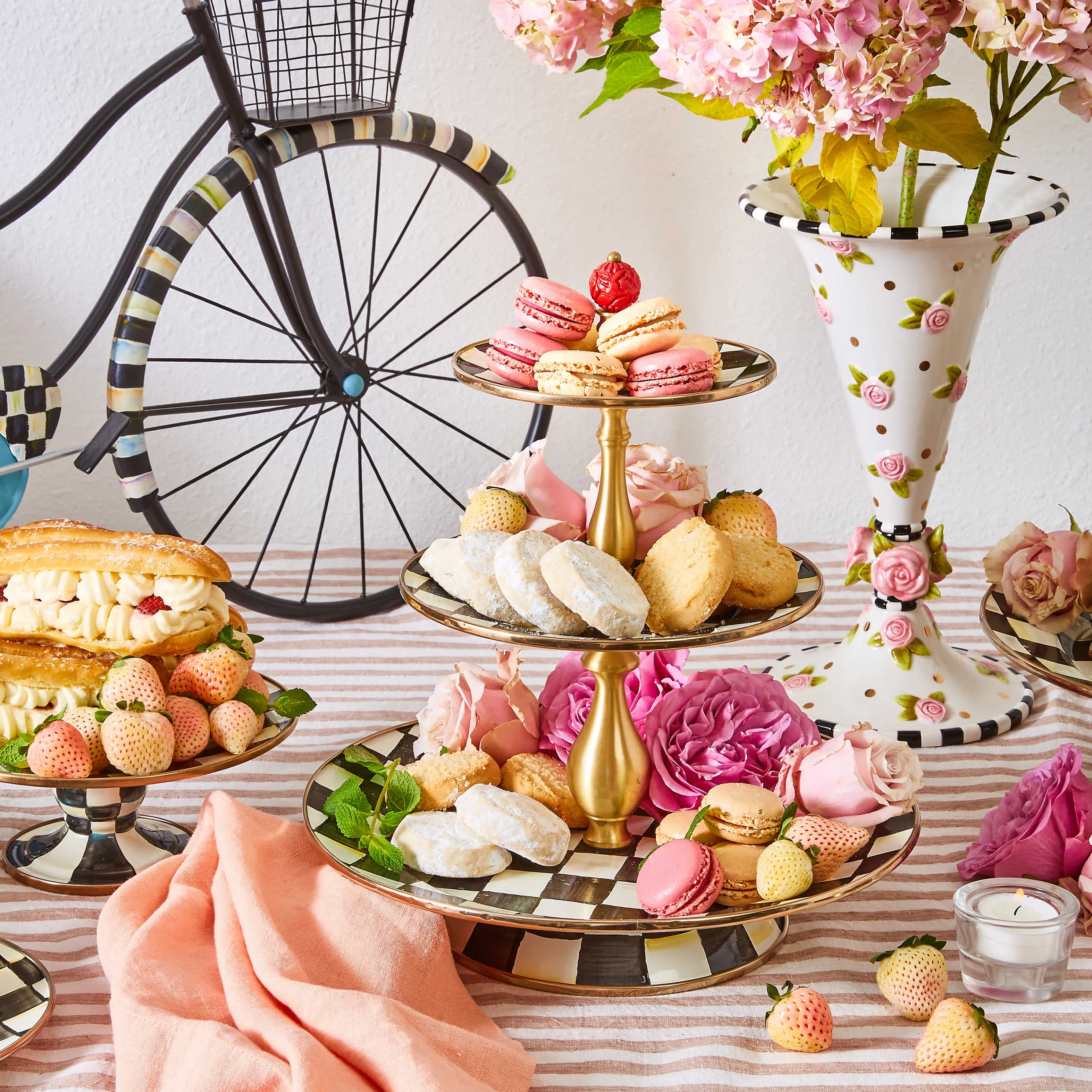Present Your Posies With Style In The Patience Brewster Really Rosy Vase. This Ceramic Vase Is Hand-Painted In Dimensional Pink Roses And Dots Of Gold Lustre And Trimmed With Black And White Stripes