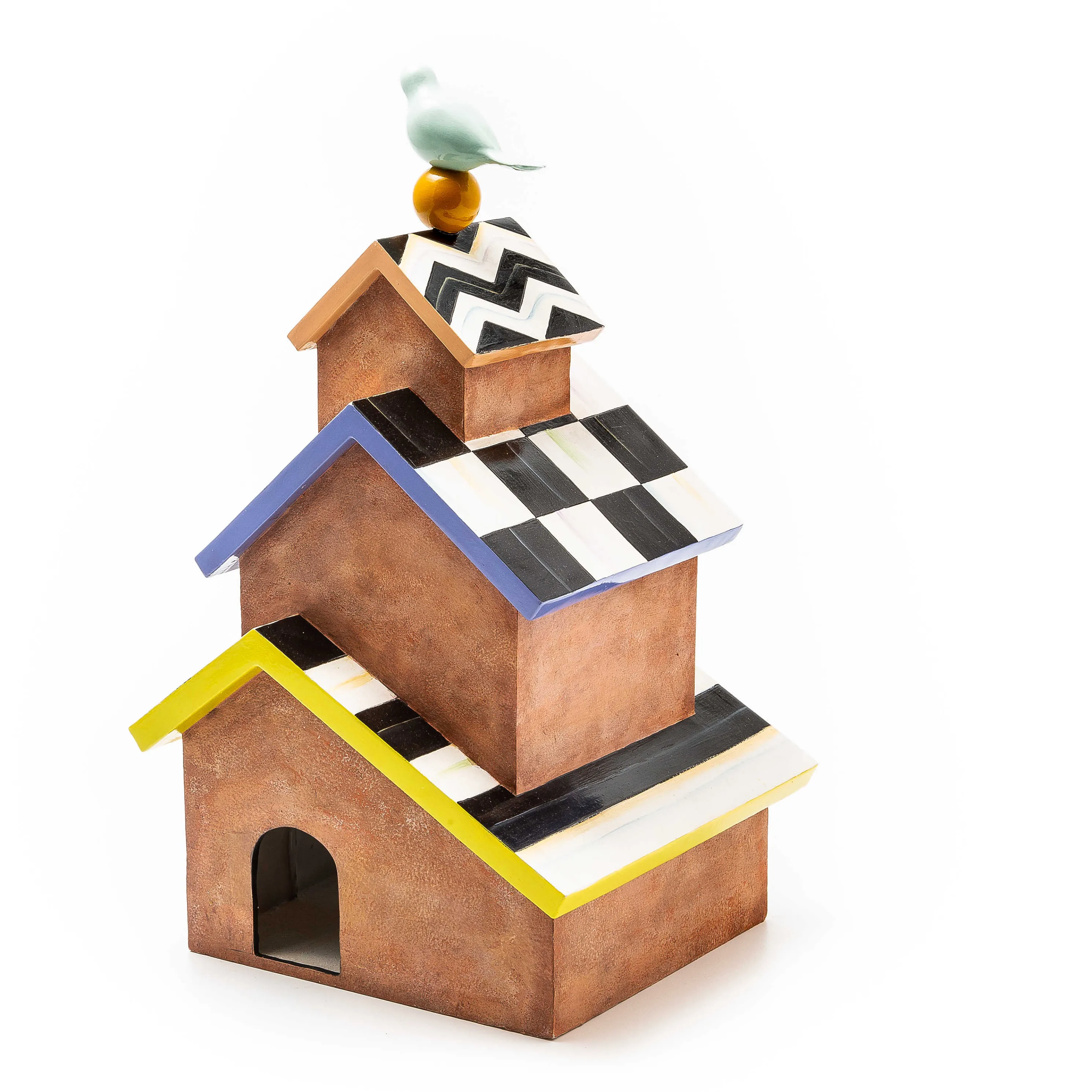 The Persephone Tabletop Bird House Is Home Tweet Home For Birds Of A Feather. Made Of Resin With A Terra Cotta Finish, It Features Hand-Painted Courtly Pattern Details.