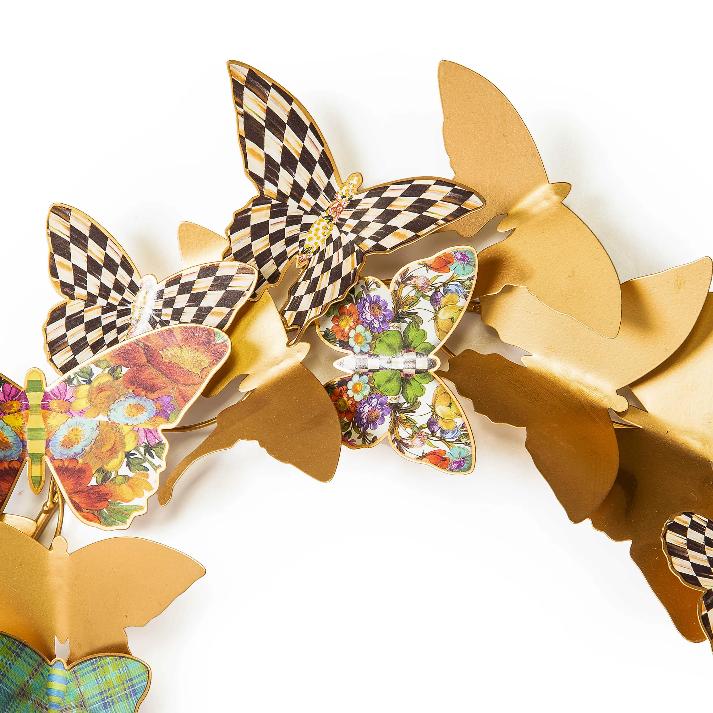 Take A Flight Of Fancy With Our Butterfly Wreath. This All-Metal Wreath Features Butterflies, Sporting Our Signature Patterns, Set On A Circular Frame.