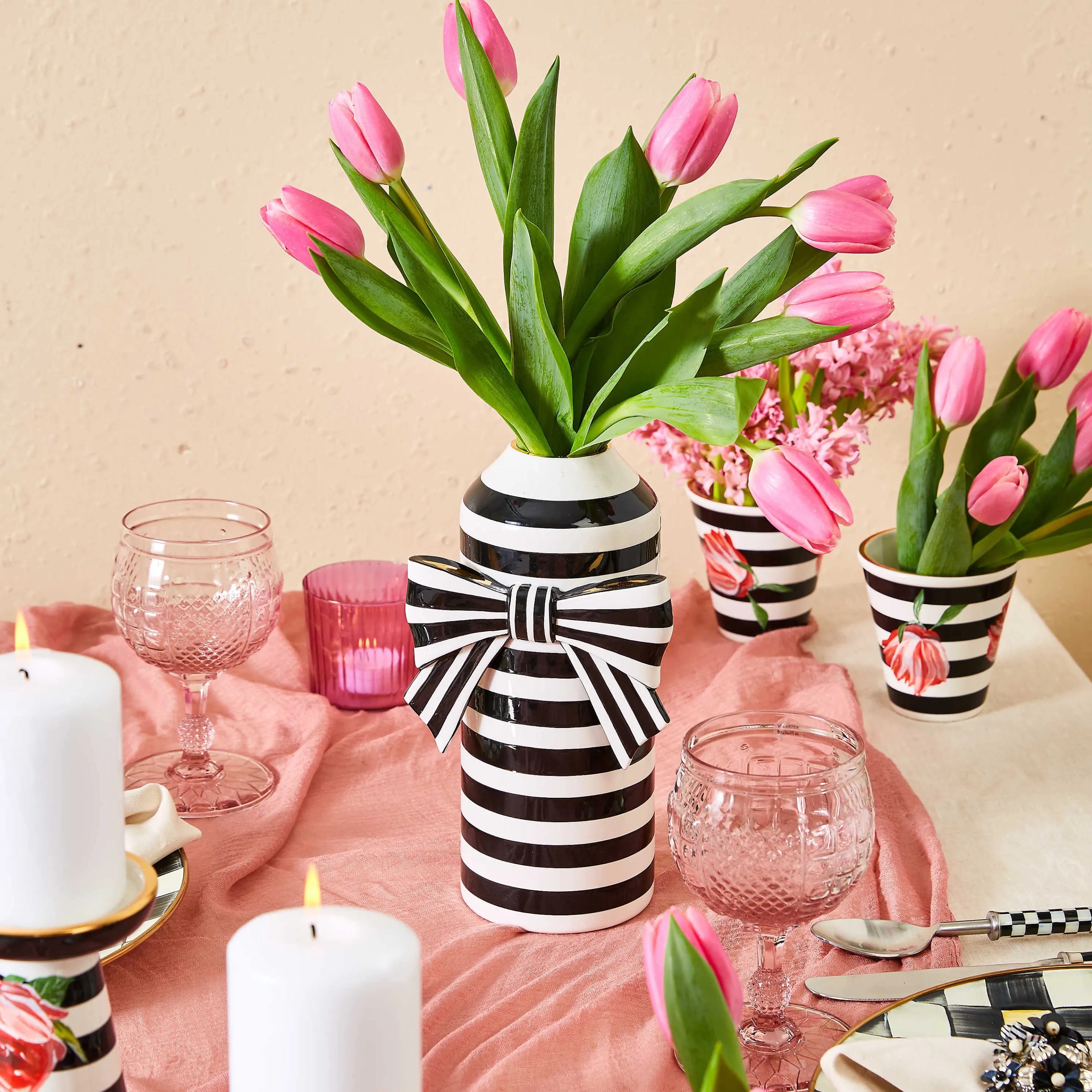Elevate The Ordinary Vase With Our Chic Courtly Bow Vase. Made Of Ceramic And Decorated With A Dimensional Striped Bow, It’S Trimmed With Touches Of Gold Lustre.