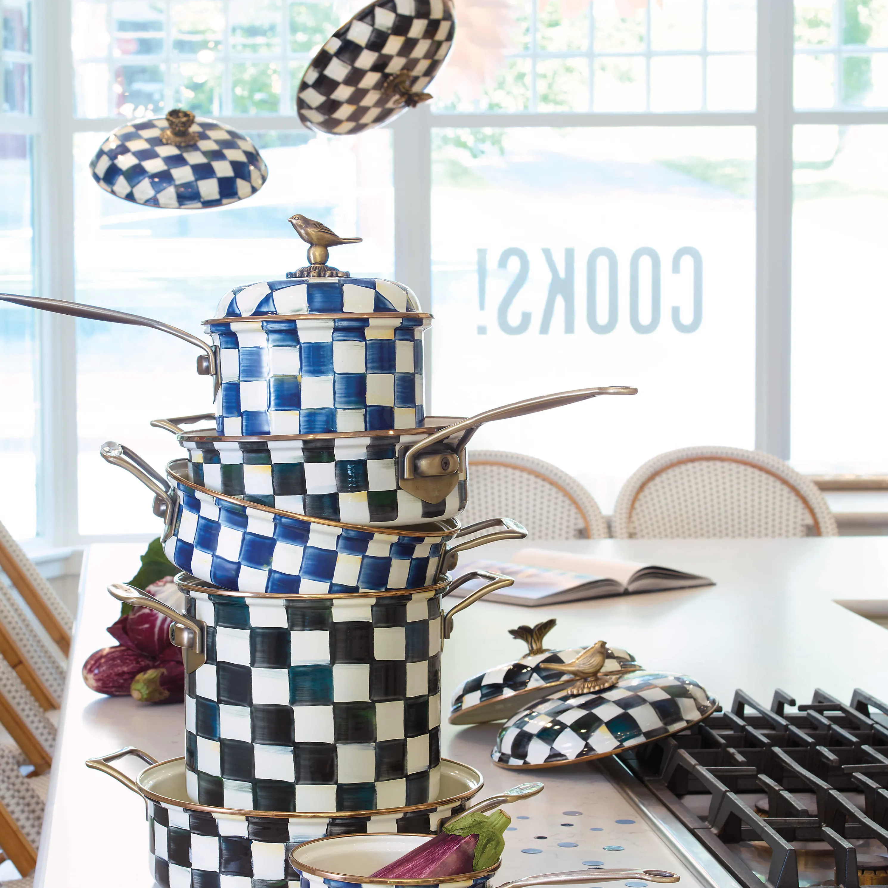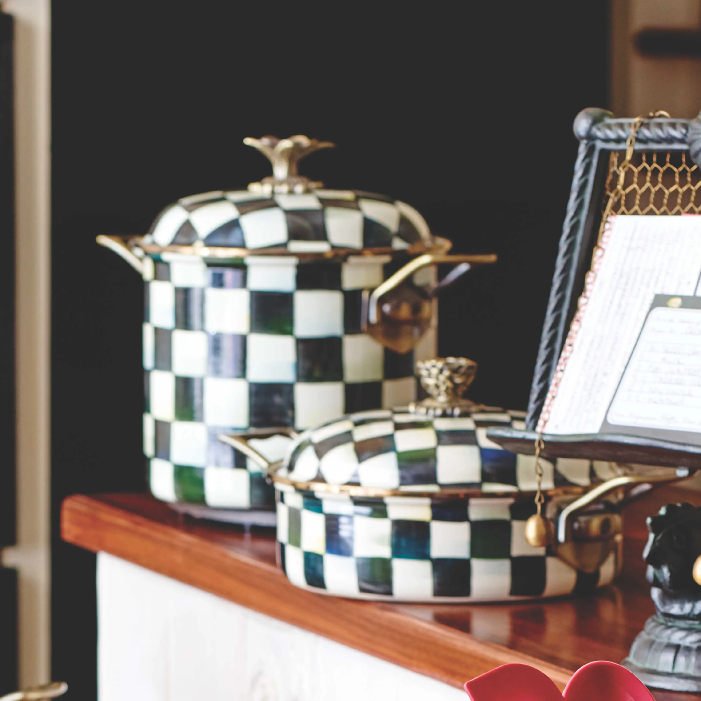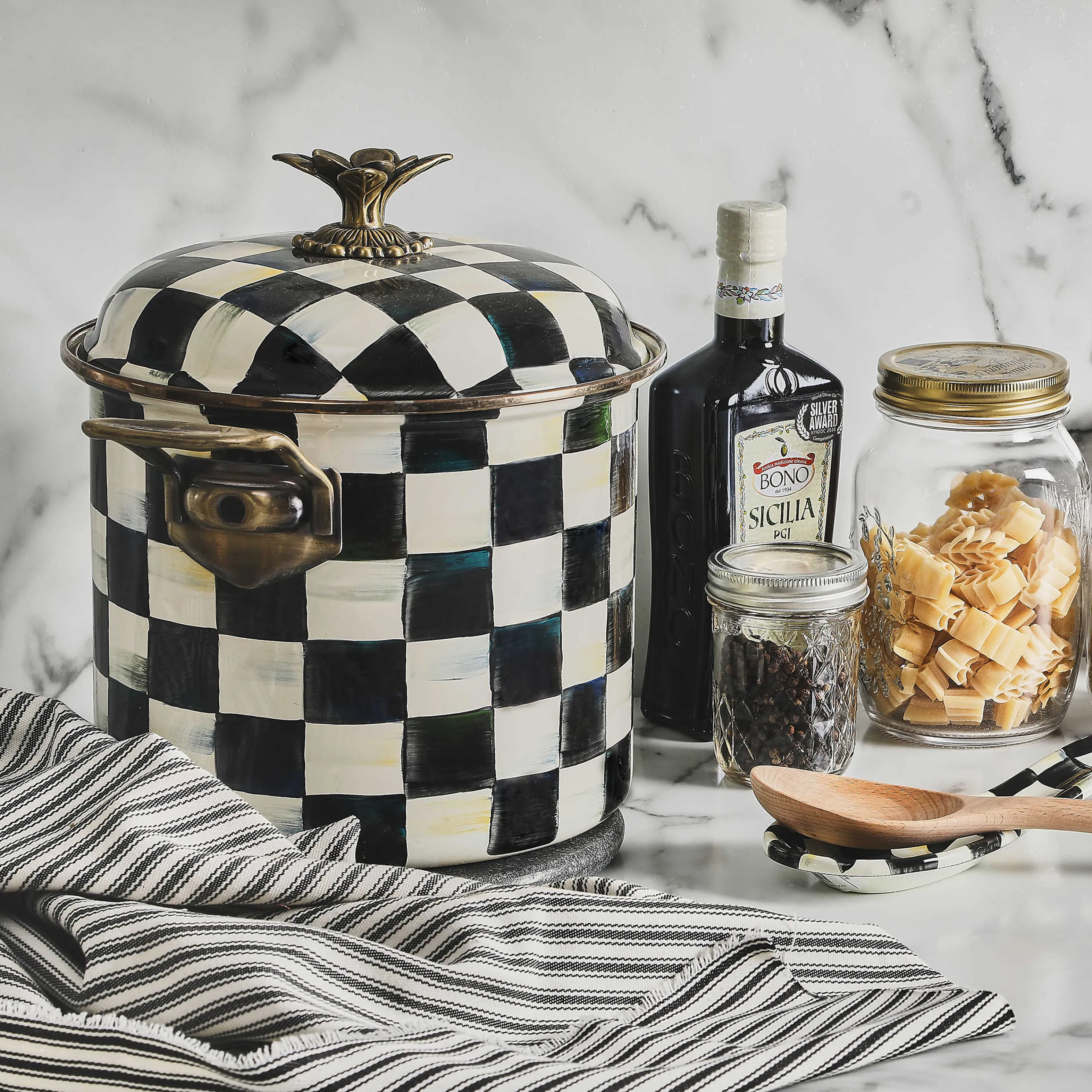 From Stovetop To Tabletop, Our Courtly Check® Enamel 7 Qt. Stockpot Transitions With More Than A Dash Of Panache. Imagine How Your Signature Soups And Stews Will Stand Out When Served Up In A Dish Bedecked With Our Signature Black And White Pattern. And To Top It All Off, A Blossoming Bud Sprouts Up To Serve As A Knob, As Unique As It Is Useful.