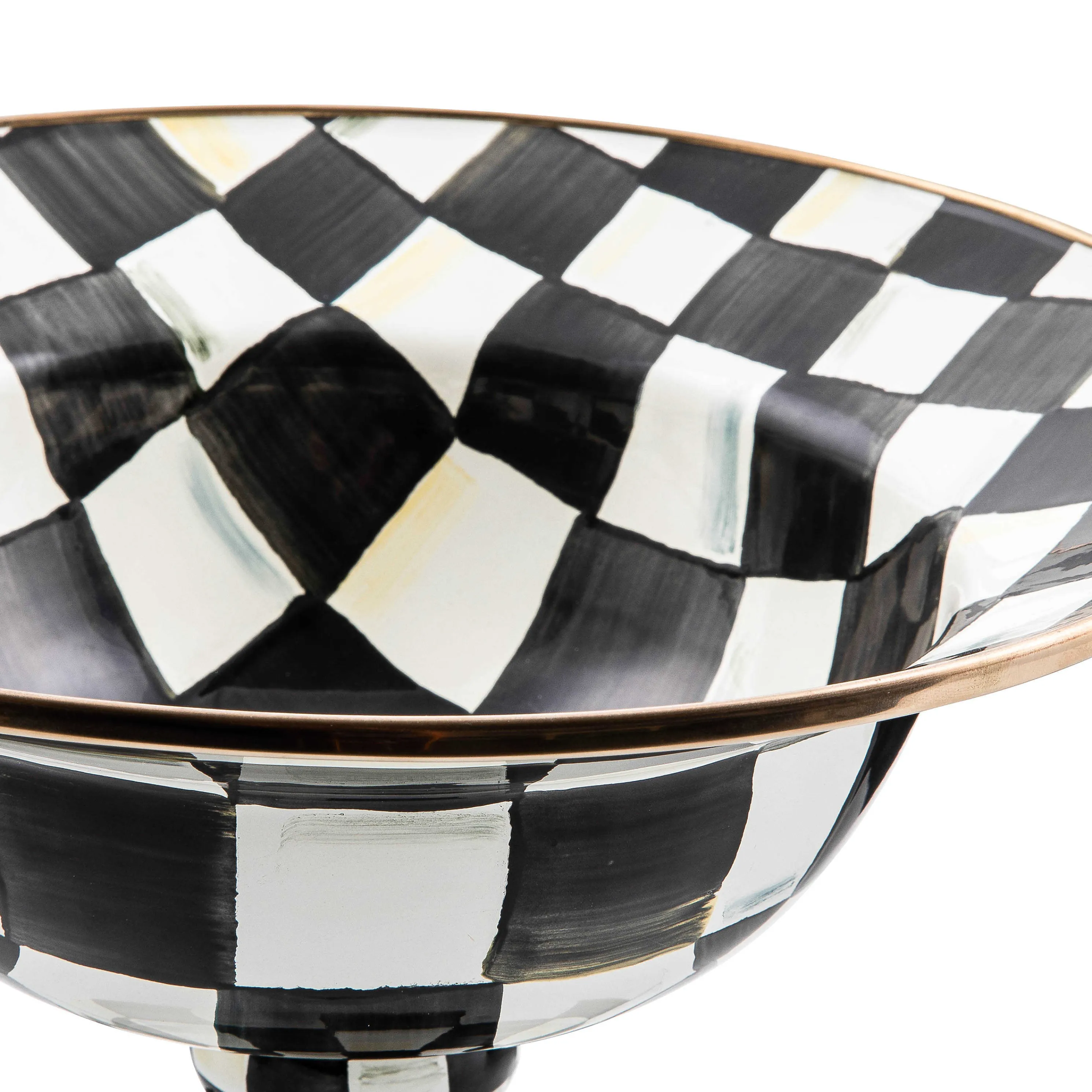 An Indispensable Party Serving Dish, The Large Courtly Check Compote Is Decorated With Our Signature Hand-Painted Checks. It Has A Steel Underbody And Bronzed Stainless-Steel Rim.