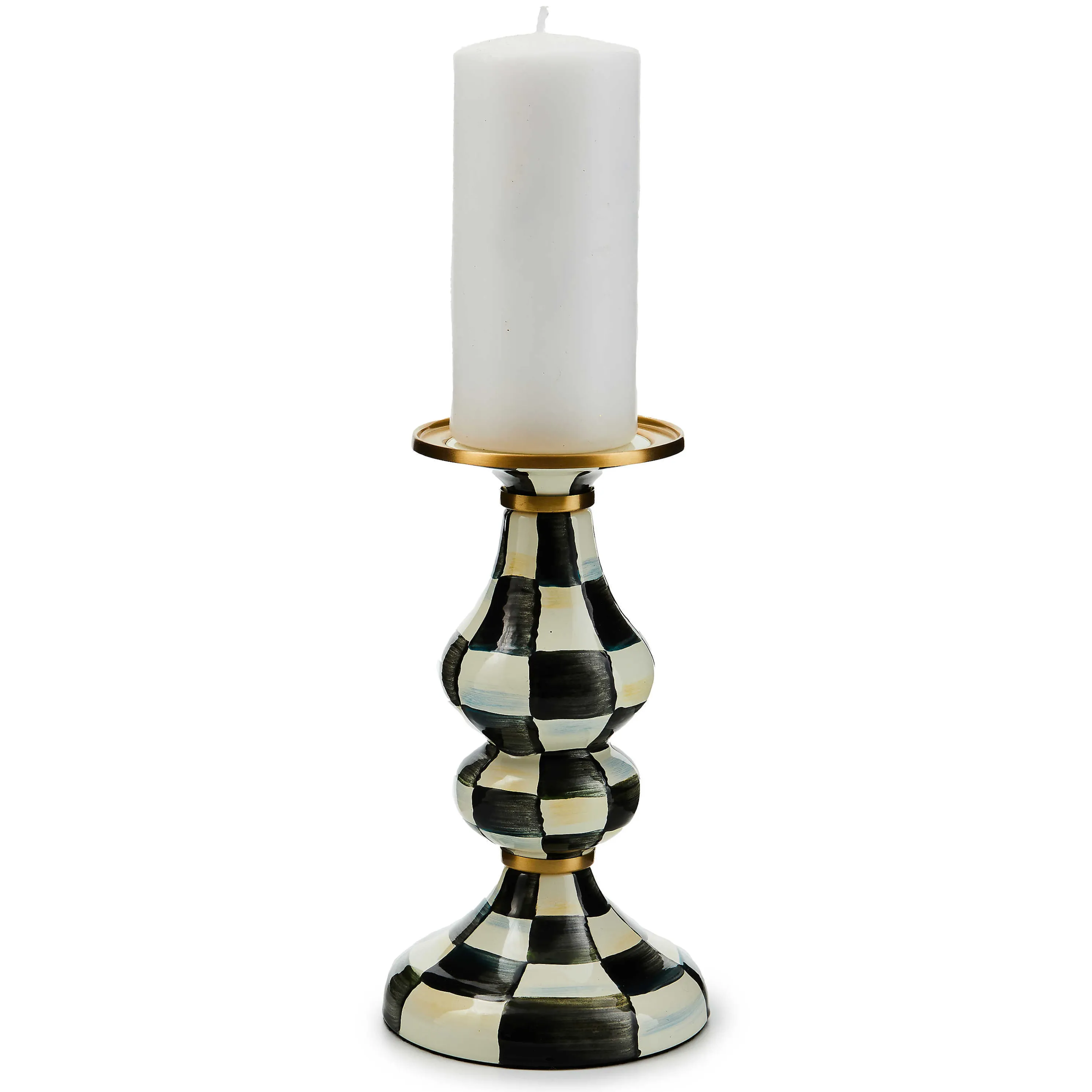 Make An Enlightening Statement Of Style By Displaying Your Pillar Candles On Our Medium Courtly Check® Enamel Pillar Candlestick. Made Of A Heavy-Gauge, Hand-Glazed Steel Underbody With Hand-Painted Courtly Checks®, It’S Embellished With Brass Accents And Rimmed In Bronzed Stainless Steel.