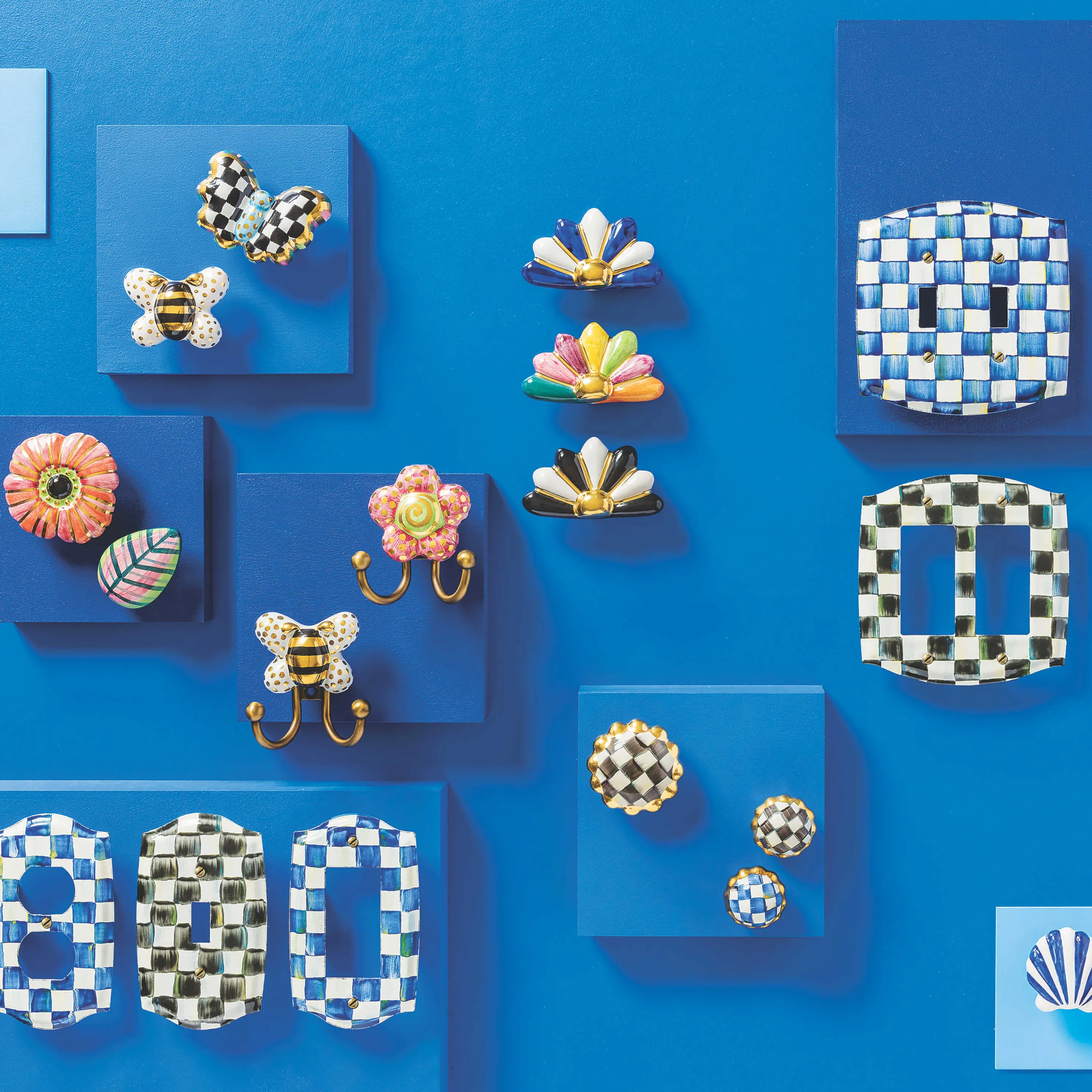 Add Classic Mackenzie-Childs Patterns To Every Light Switch In Your Home! Our Enameled Steel Single Toggle Courtly Check® Switch Plate Is Hand Decorated And Comes With Antiqued-Brass-Plated Hardware For Installation.