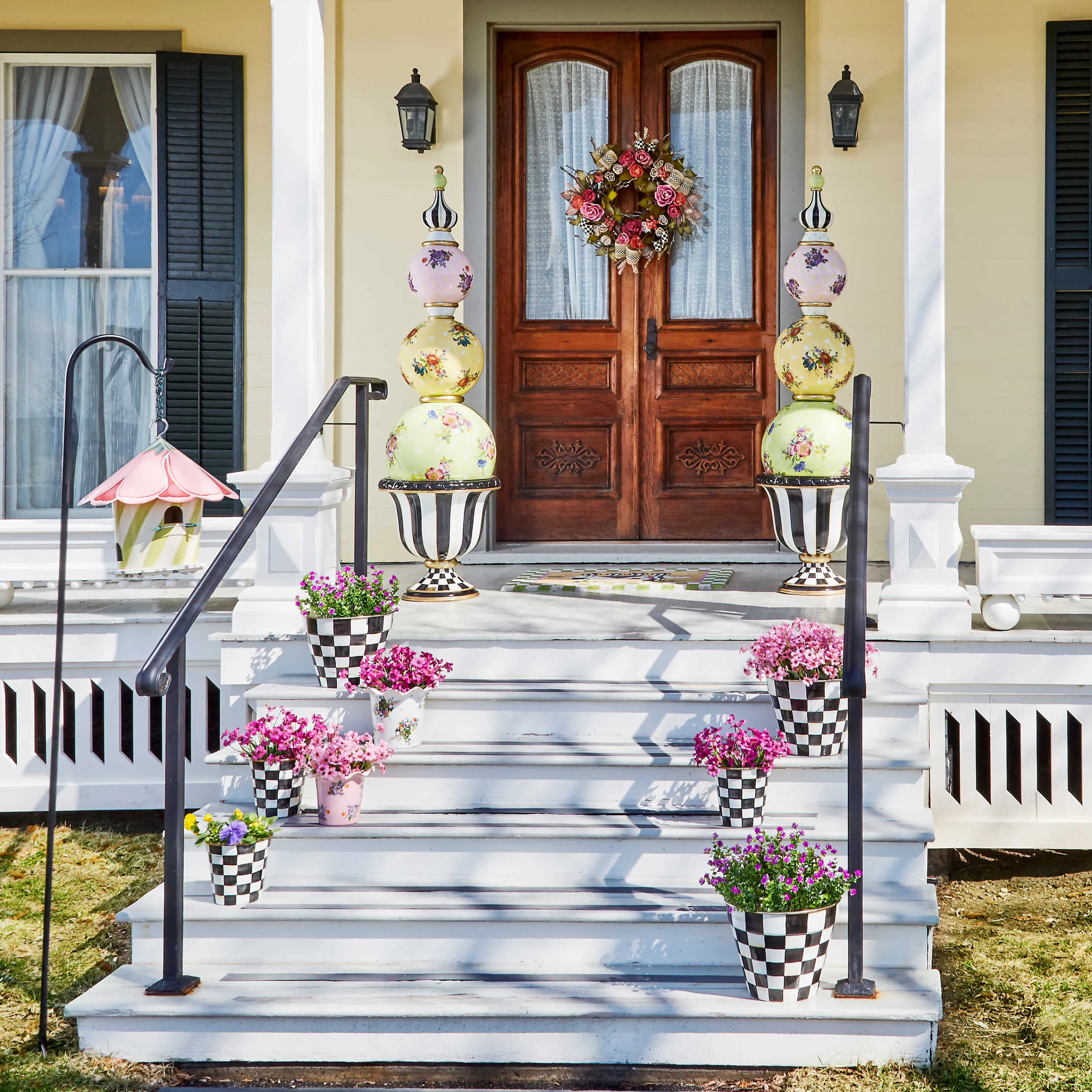 Elevate The Presentation Of Our Stacked Seasonal Accents With The Weather-Resistant Courtly Stripe Pedestal Urn. Crafted Of Durable Fiberglass And Resin, It’S Hand-Painted With Our Signature Black And White Stripes. There Is A Drainage Hole In The Bottom, So You Can Add Your Own Plants As Well.