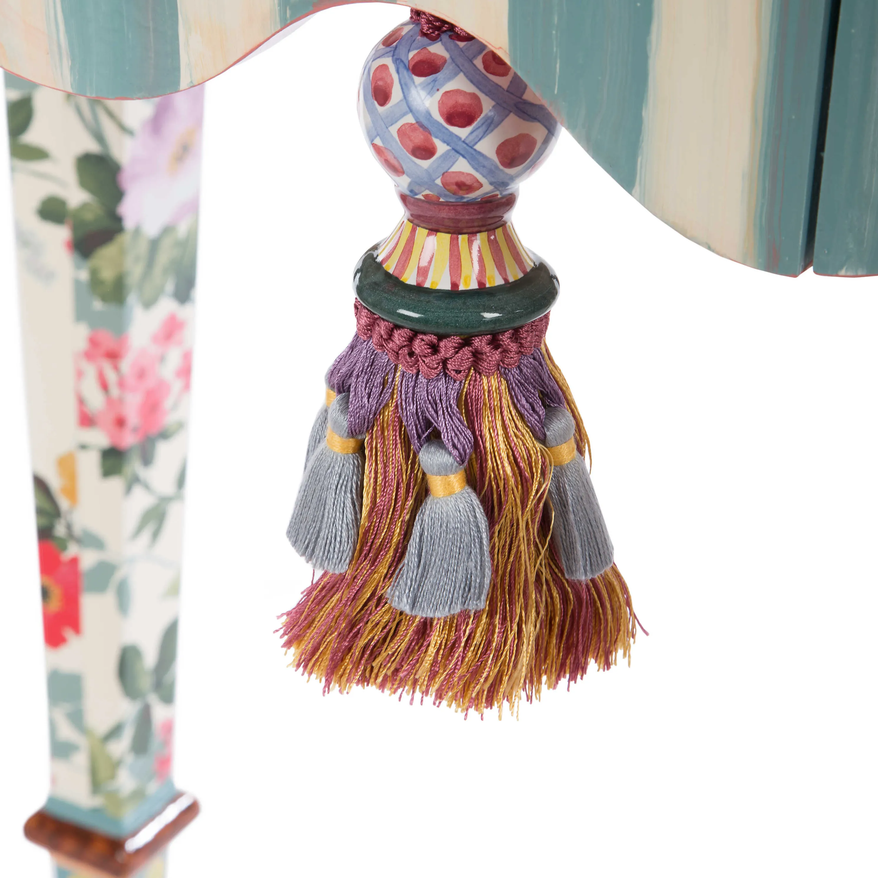 An Abundance Of Incredible Patterns Come Together In A Harmonious Design On Our Marble Side Table. A Faux Marble Finish, Stripes, Polka Dots, Our Signature Courtly Check® Pattern, And Tortoiseshell Are Hand-Painted In Aurora On Top Of European Beechwood. As Finishing Touches, The Legs Are Decorated With Wallpaper Accents And Dangling Ceramic Tassels Are Added To The Top. This Stunner Will Bring Some Serious Style To A Bedroom Or Entryway.