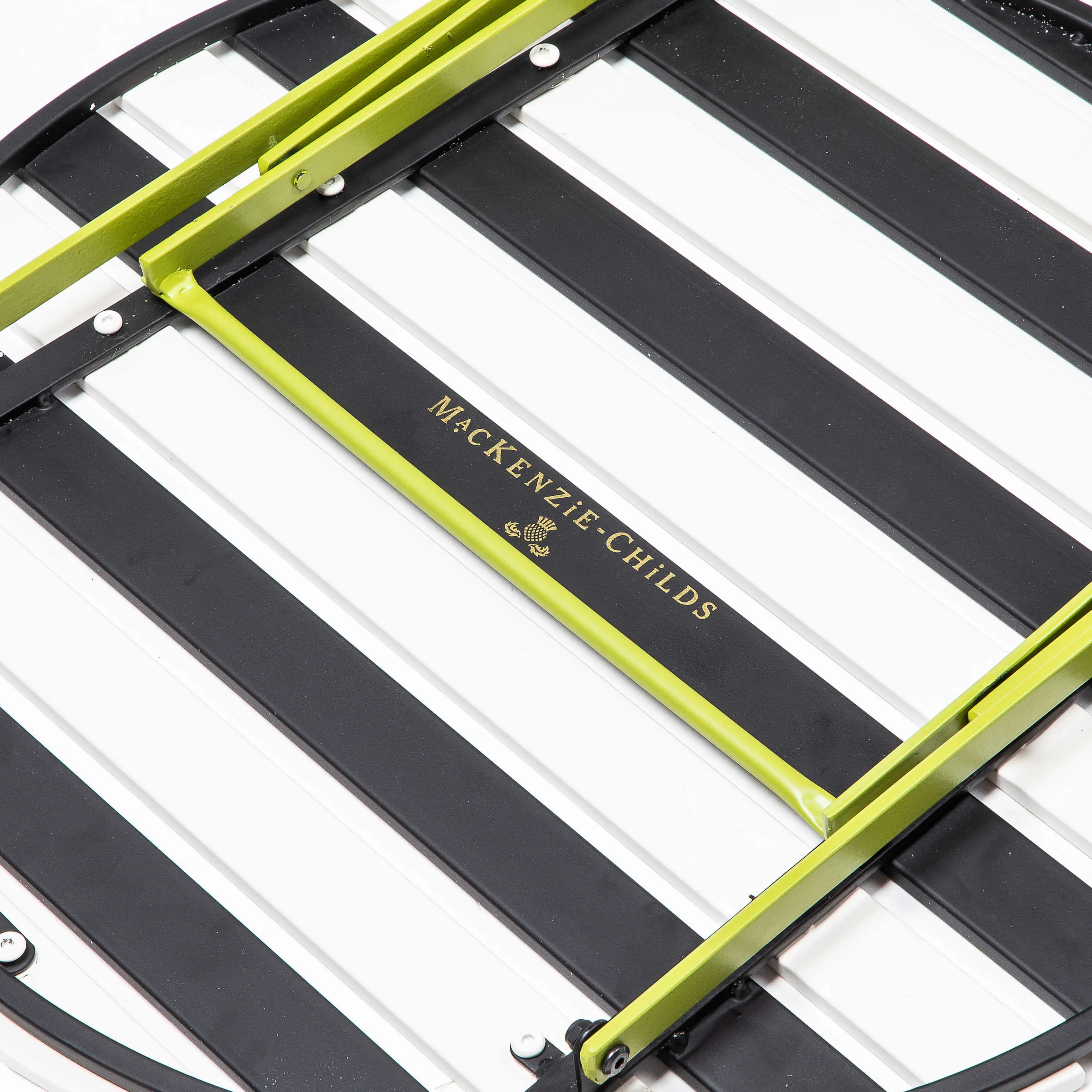Give The Patio—No Matter Its Size—Some Panache With The Outdoor Black & White Metal Bistro Table. Its Collapsible, Powder-Coated Iron Frame Is Sprayed Chartreuse, With Black And White Slats On The Table Surface. Pair It With The Matching Outdoor Black & White Metal Bistro Side Chair.