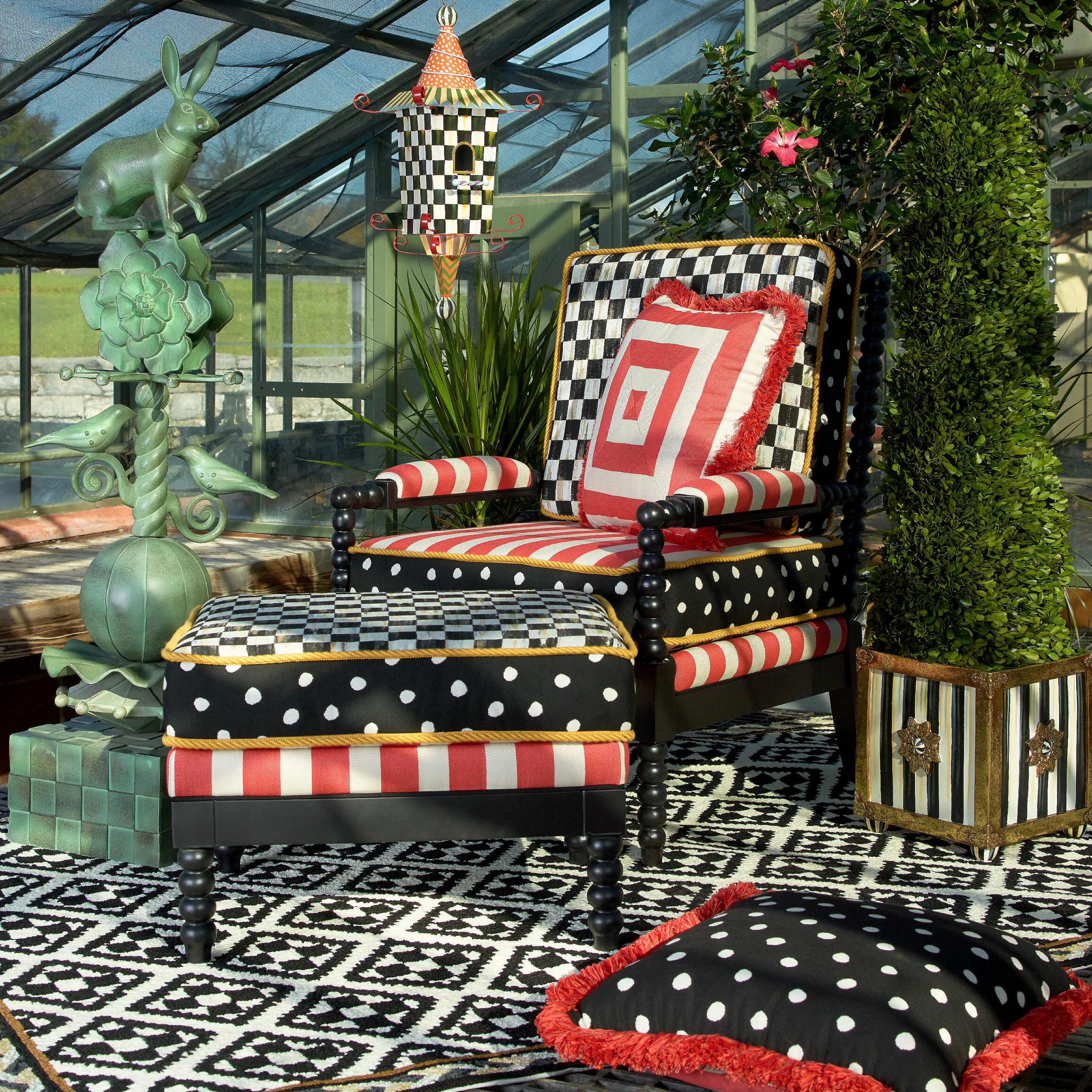 From The Birds To The Bees, Mackenzie-Childs’ Unusual Garden Designs Add Fun And Play To Any Outdoor Space. Give Your Local Songbirds A Mackenzie-Childs-Style Home With A Bit Of Exotic Flair In The Pagoda Birdhouse.