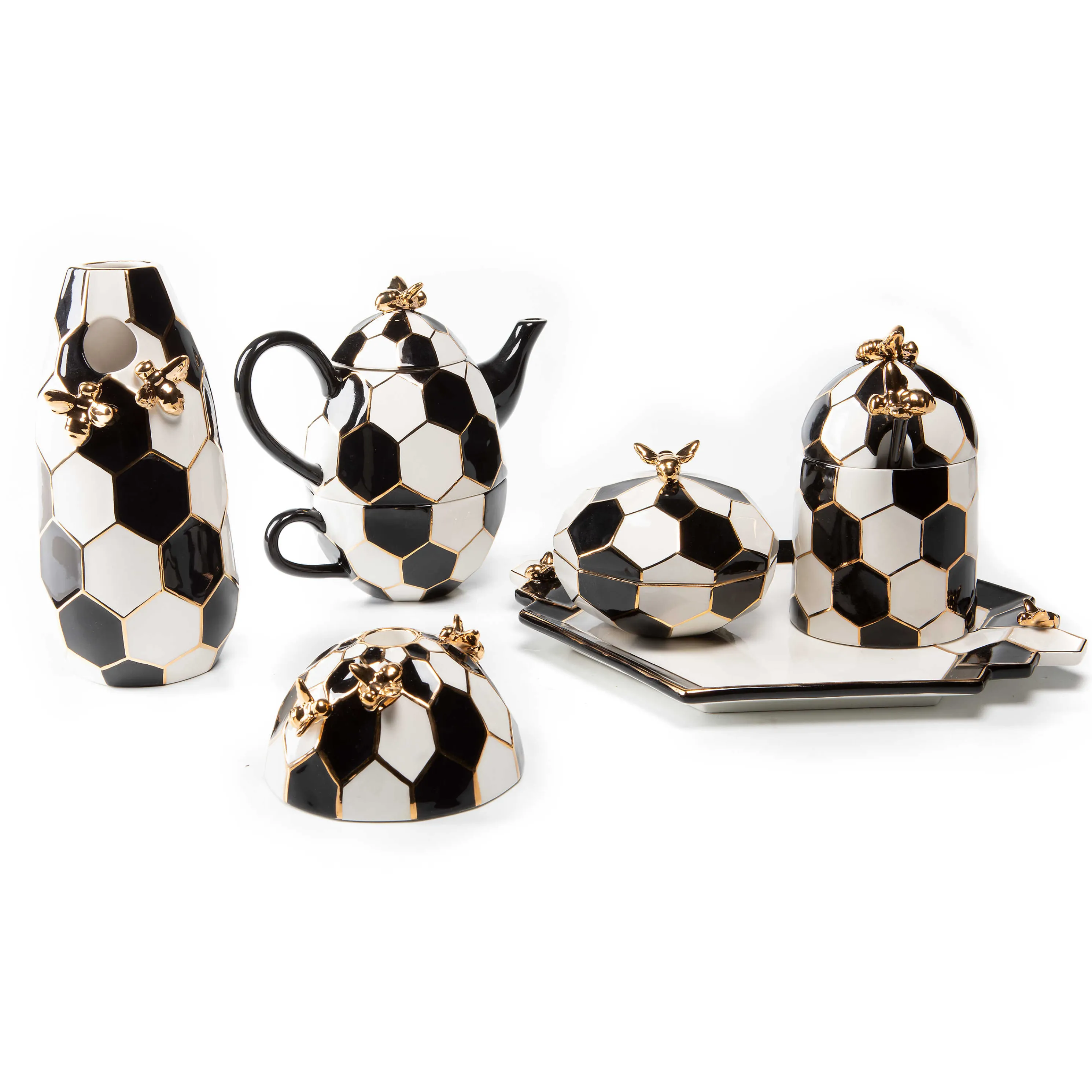 The Ceramic Queen Bee Honey Pot Serves With Style. Decorated In A Modern Black And White Hive Pattern, Trimmed With Gold Lustre, It’S Embellished With Buzz-Worthy Bees On The Top And On Its Stirrer Stick.
