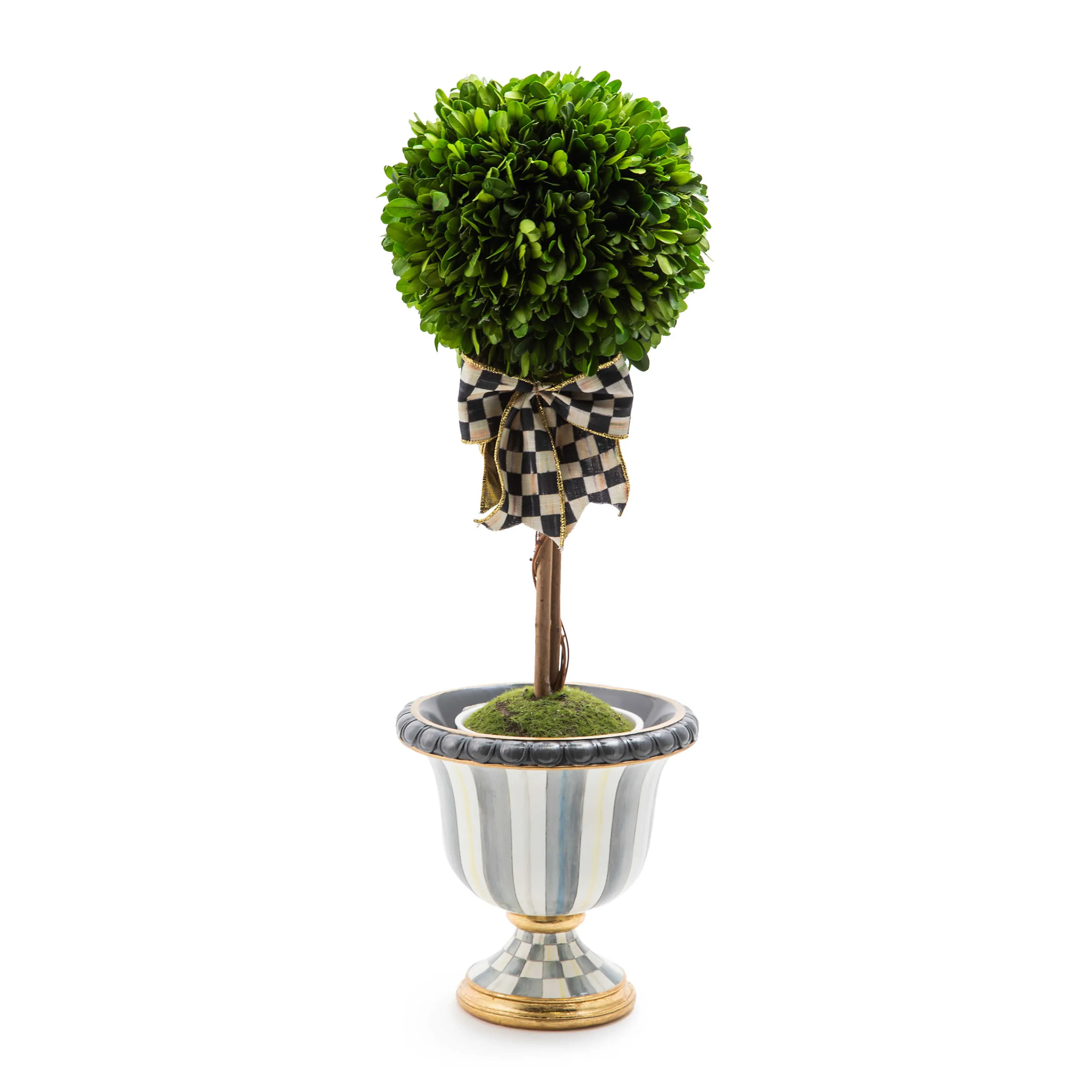 Elevate The Presentation Of Our Sterling Check Pattern With The Sterling Check Tabletop Urn. Hand-Painted With Our Signature Grey And White Patterns With Golden Embellishments, It’S Just The Right Size For Our Topiary Drop-Ins.